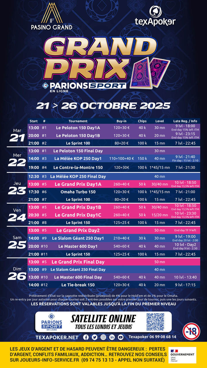 Texapoker and its brand new partner are jointly launching a brand new tournament, the ParionsSport Grand Prix online!