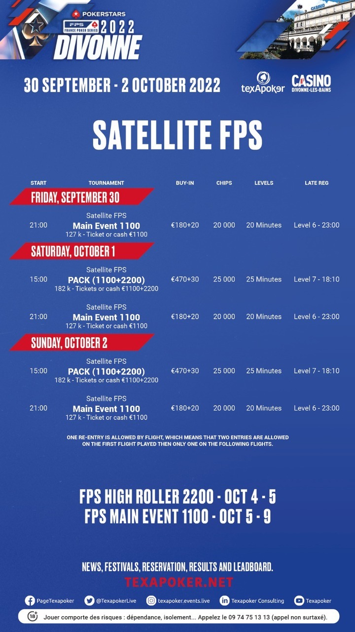 PokerStars, Texapoker and the Casino de Divonne are offering you the chance to win a ticket to the SPF, which will take place from October 4th to 9th
