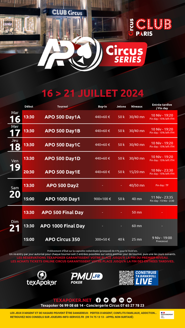 Texapoker is back at Club Circus Paris, with an All Poker Open by PMU.fr!