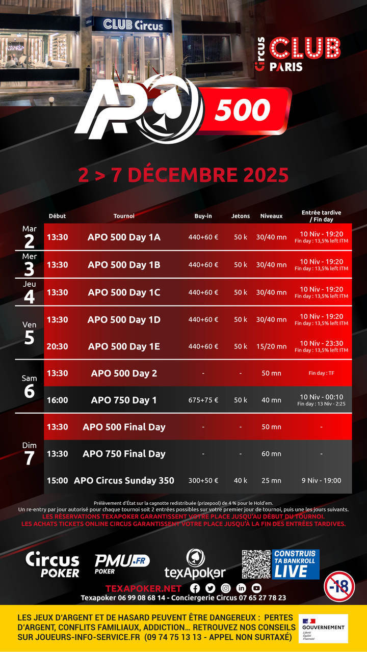 Texapoker is back at Club Circus Paris, with an All Poker Open by PMU.fr!