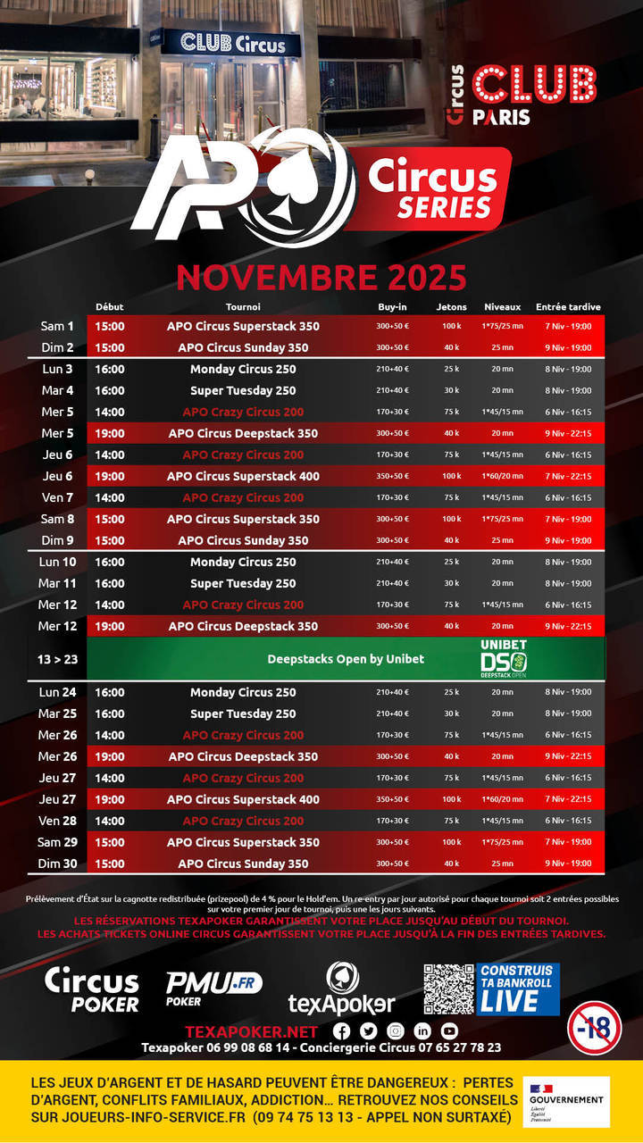 Texapoker and Club Circus present their regular tournaments, the APO Circus Series!