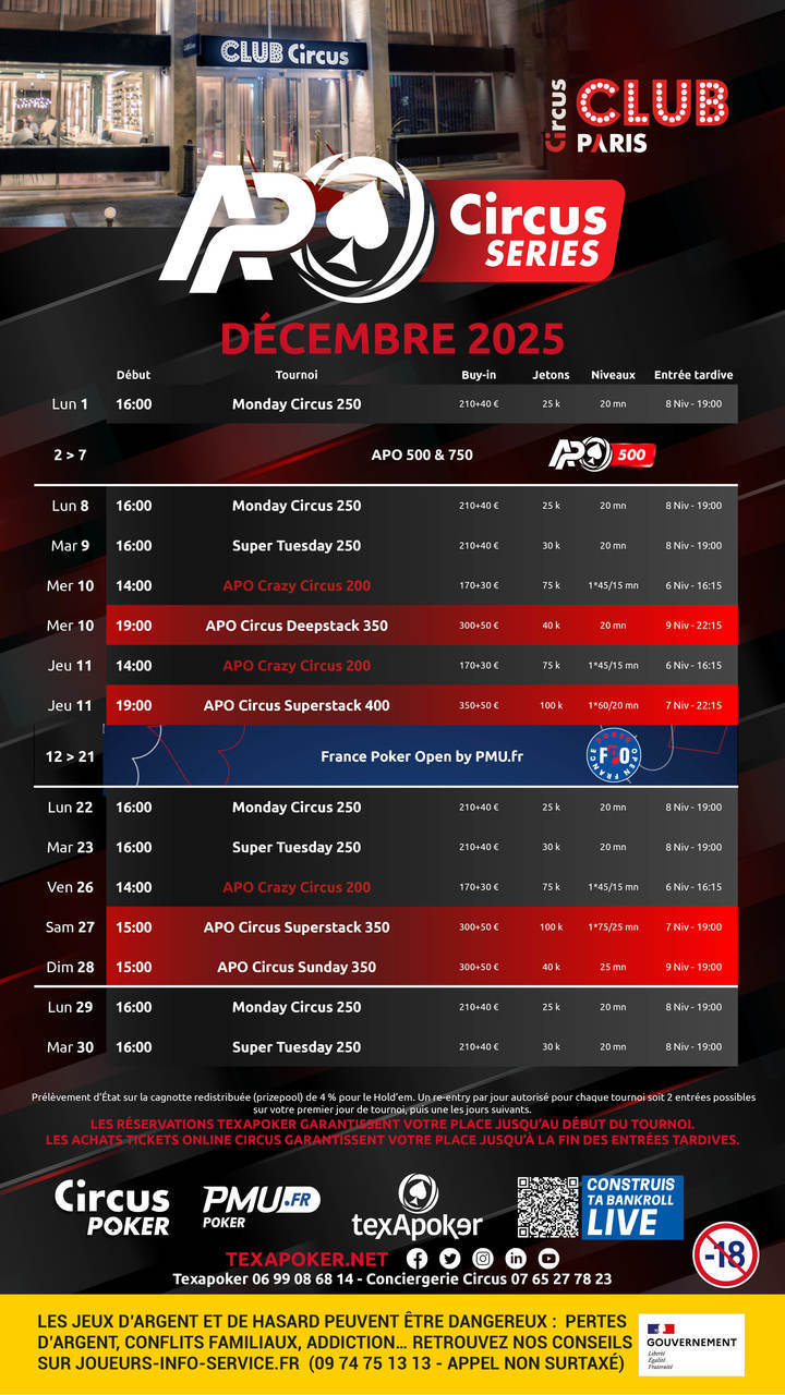 Texapoker and Club Circus present their regular tournaments, the APO Circus Series!