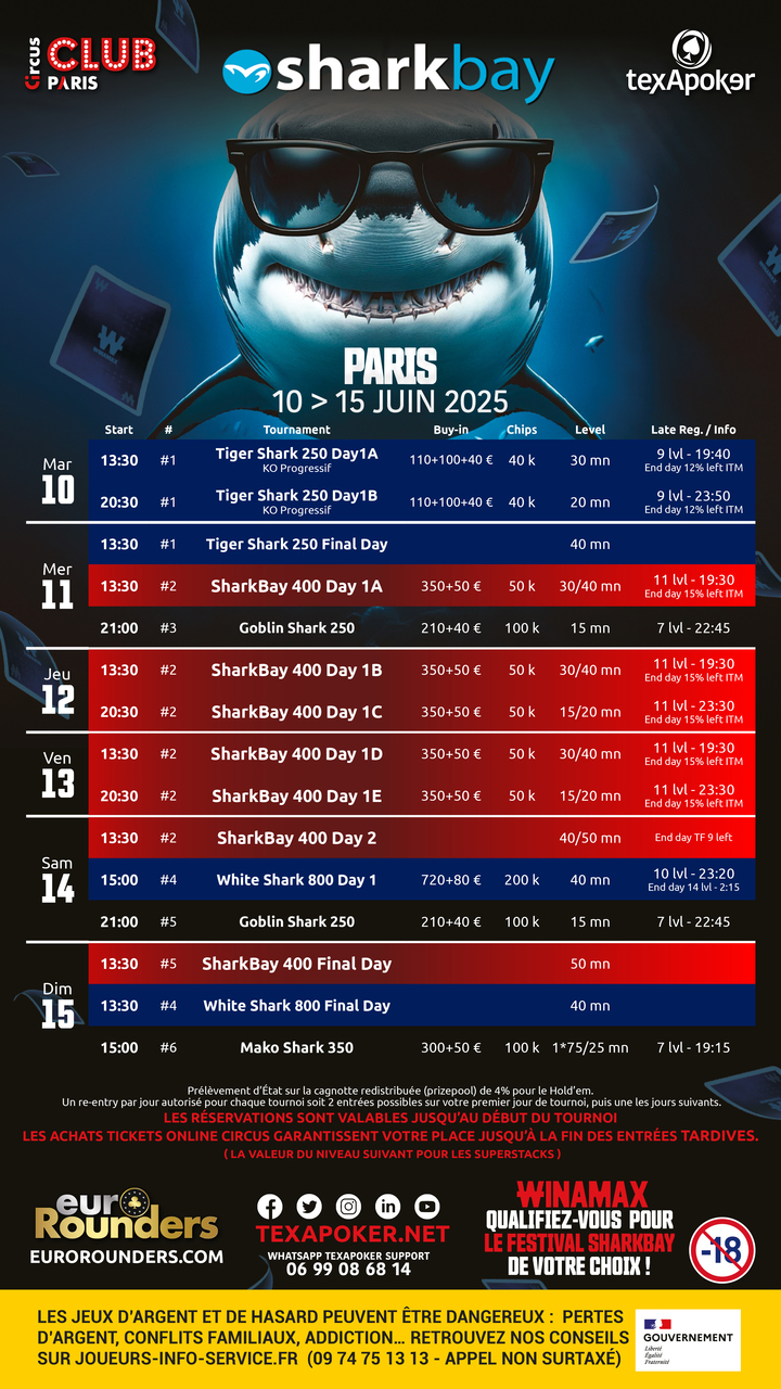 Texapoker launches the SharkBay festival at Club Circus Paris and strengthens its partnership with EuroRounders!