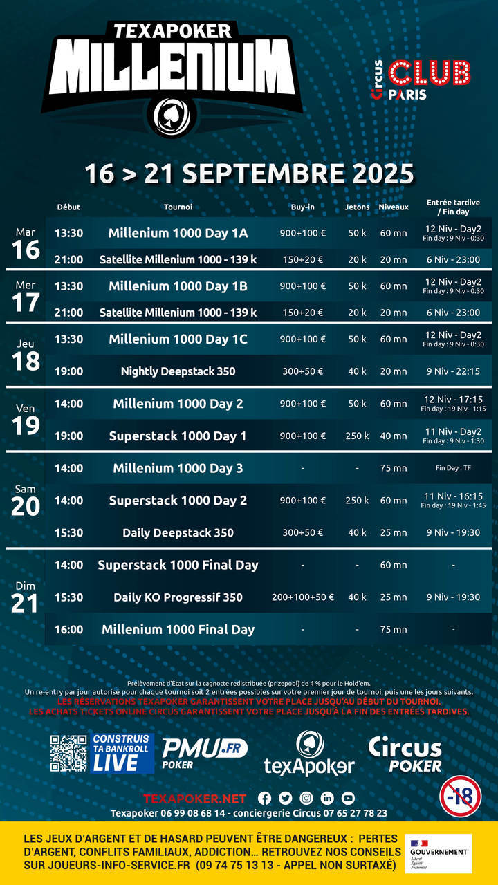 Texapoker is back at Club Circus in Paris for the Texapoker Millenium event and its €1,000 Main Event.