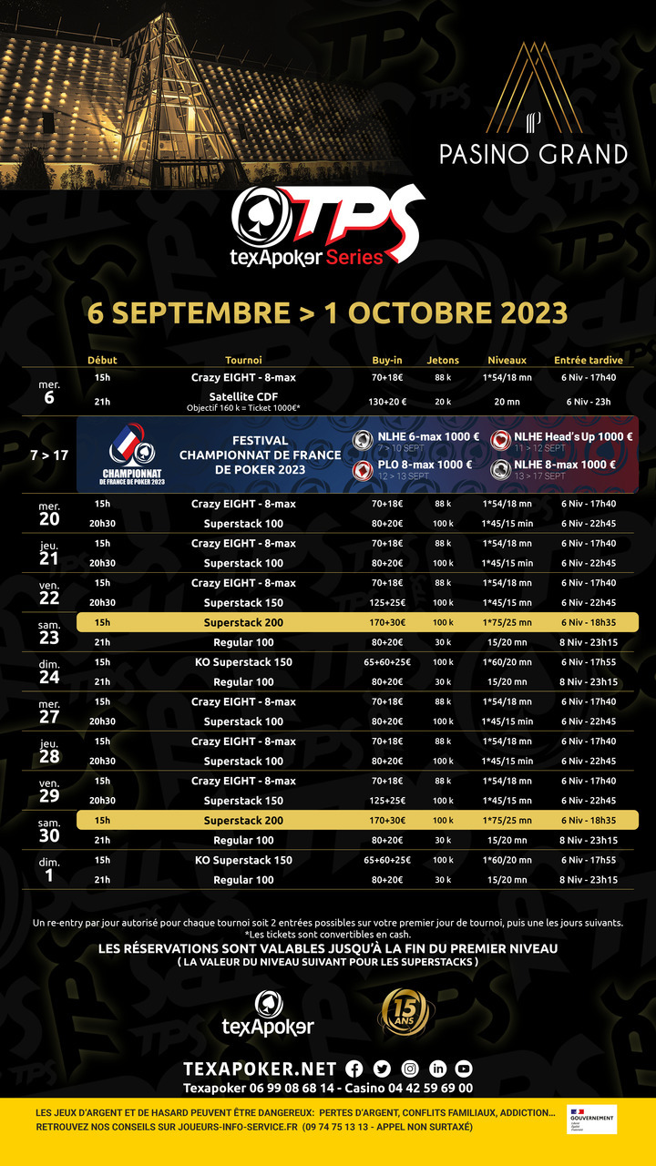 TPS is the trademark of Texapoker! In partnership with PMU.co.uk, you can try to win your seat in Texapoker live tournaments on one of their online satellites.
