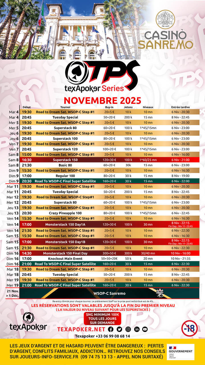 TPS is Texapoker's trademark, and it's coming back to Italy at the Sanremo Casino!