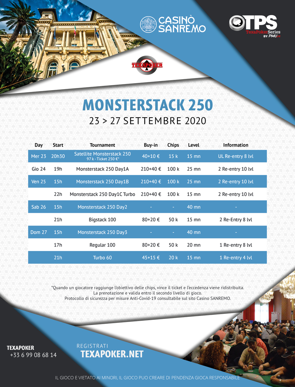 For security reasons, the tournaments will be held in 6-Max. To find out more about the security protocol, visit the Casino di Sanremo website.