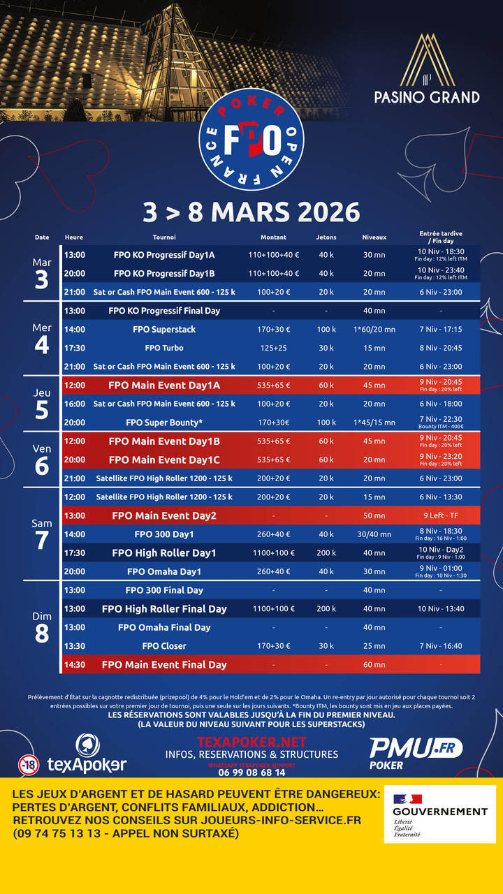 El France Poker Open de PMU.fr y Texapoker continúa en 2026 y la próxima etapa tendrá lugar en el Pasino Grand d'Aix-en-Provence