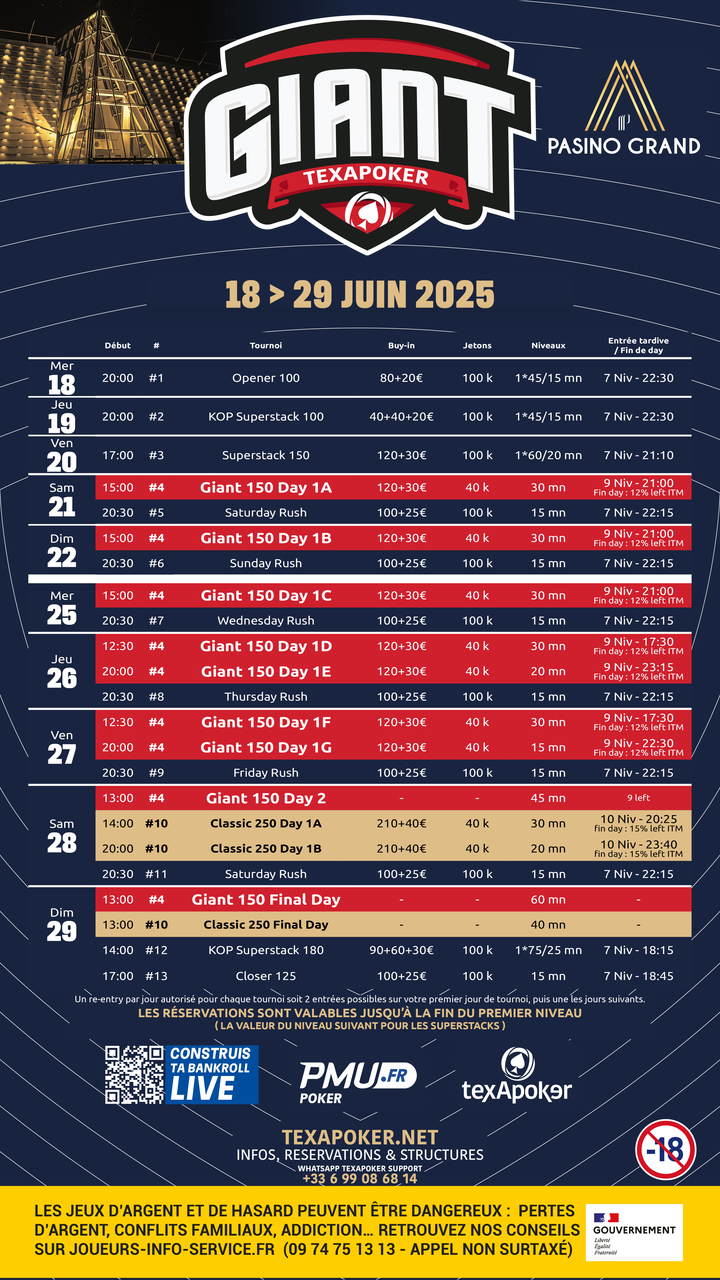 Texapoker vuelve al Pasino Grand de Aix-en-Provence con un festival a gran escala, ¡el Texapoker Giant!