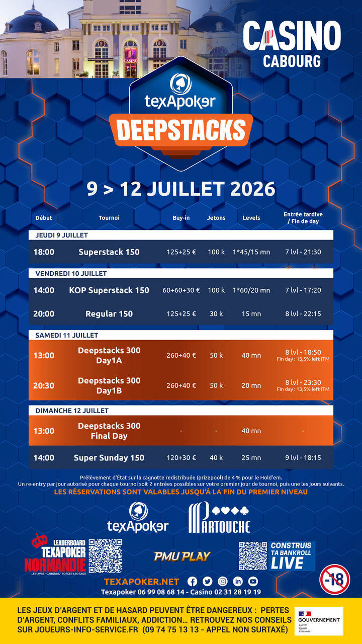 ¡Texapoker está de vuelta en el Casino de Cabourg con los Texapoker Deepstacks!
