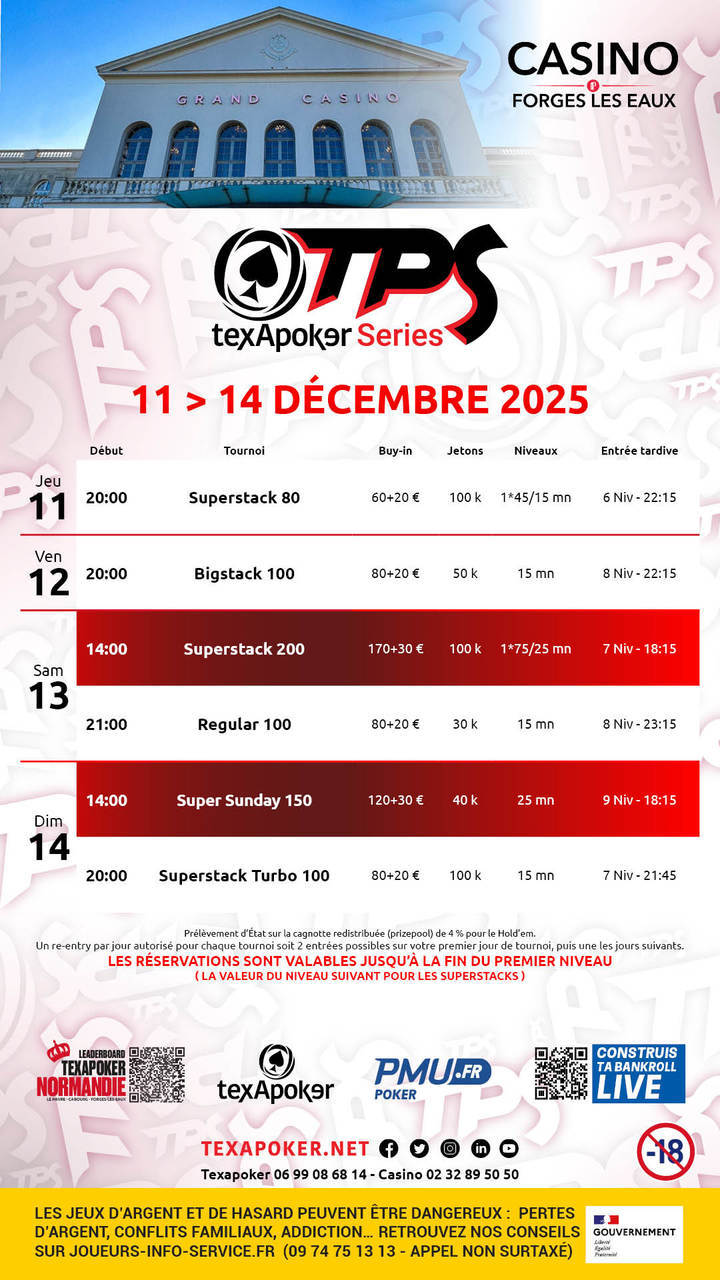 ¡TPS es la marca de Texapoker! Al igual que en todos los torneos TPS, los tickets ganados en PMU.fr se pueden utilizar en todos los torneos.