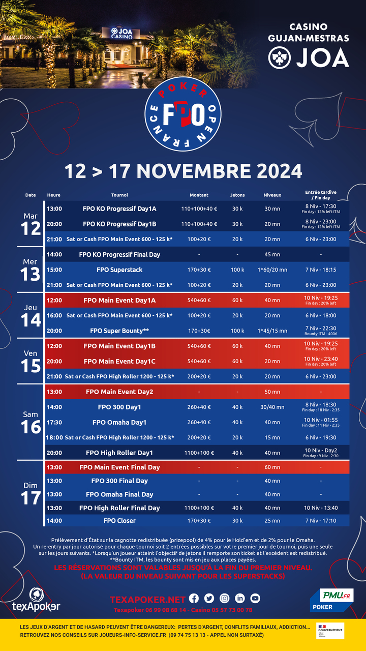 ¡El France Poker Open de PMU.fr y Texapoker continúa en 2024, y la próxima etapa tendrá lugar en el Casino JOA de Gujan-Mestras!