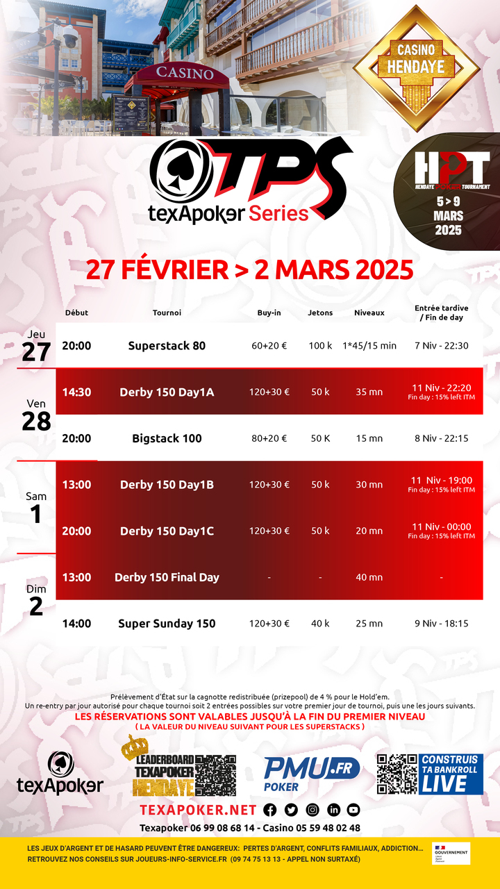 ¡TPS es la marca registrada de Texapoker! Como en todos los torneos TPS, las entradas ganadas en PMU.es pueden utilizarse en todos los torneos.