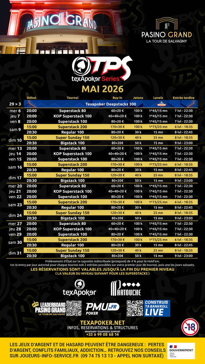 Cada semana, de miércoles a domingo, encontrarás una gran variedad de torneos, entre los que se incluyen el Superstack 80, 125 y 200, el KOP Superstack 100, así como un Regular 100, el Super Sunday 150 y un Bigstack 100