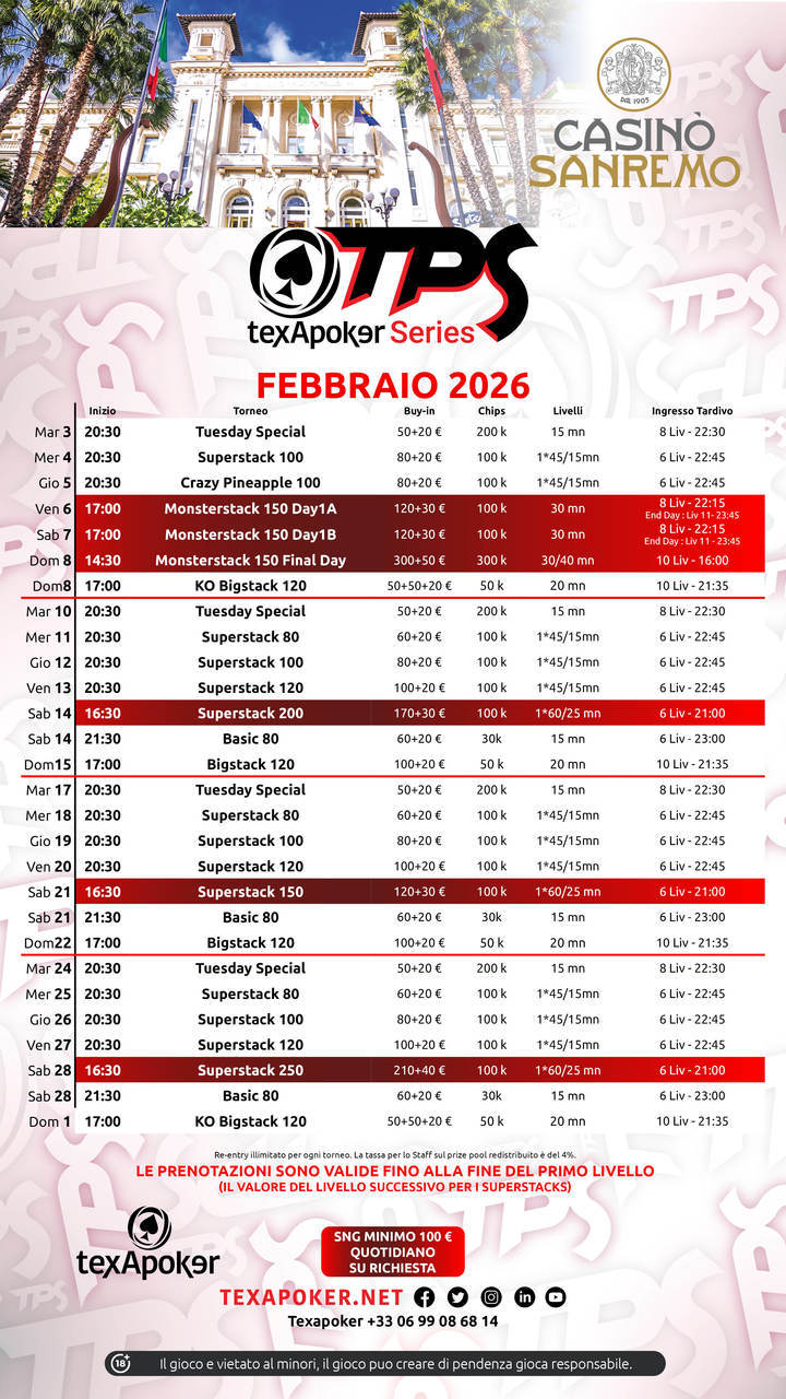 El TPS es la marca registrada de Texapoker y vuelve a Italia al casino de San Remo.