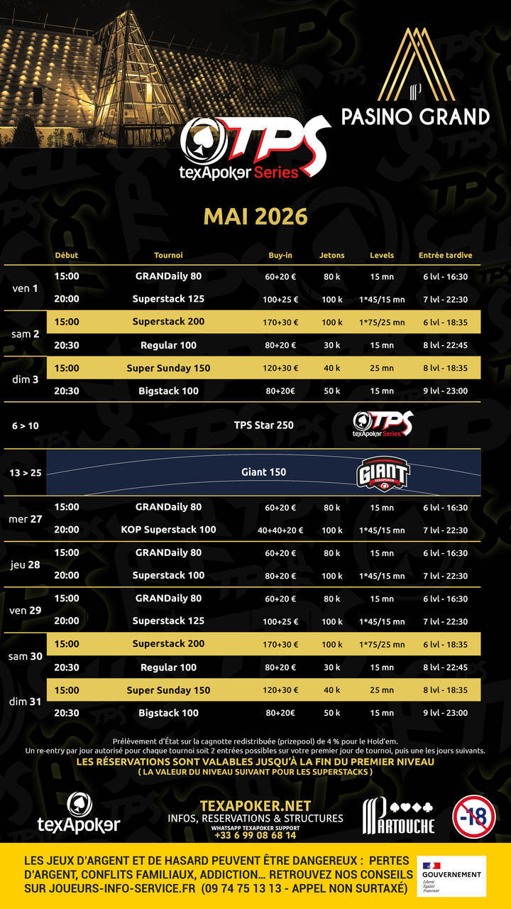 Les tournois TPS sont la marque de fabrique de Texapoker ! Comme sur tous les tournois TPS, les tickets remportés sur PMU.fr sont utilisables sur l'ensemble des tournois.