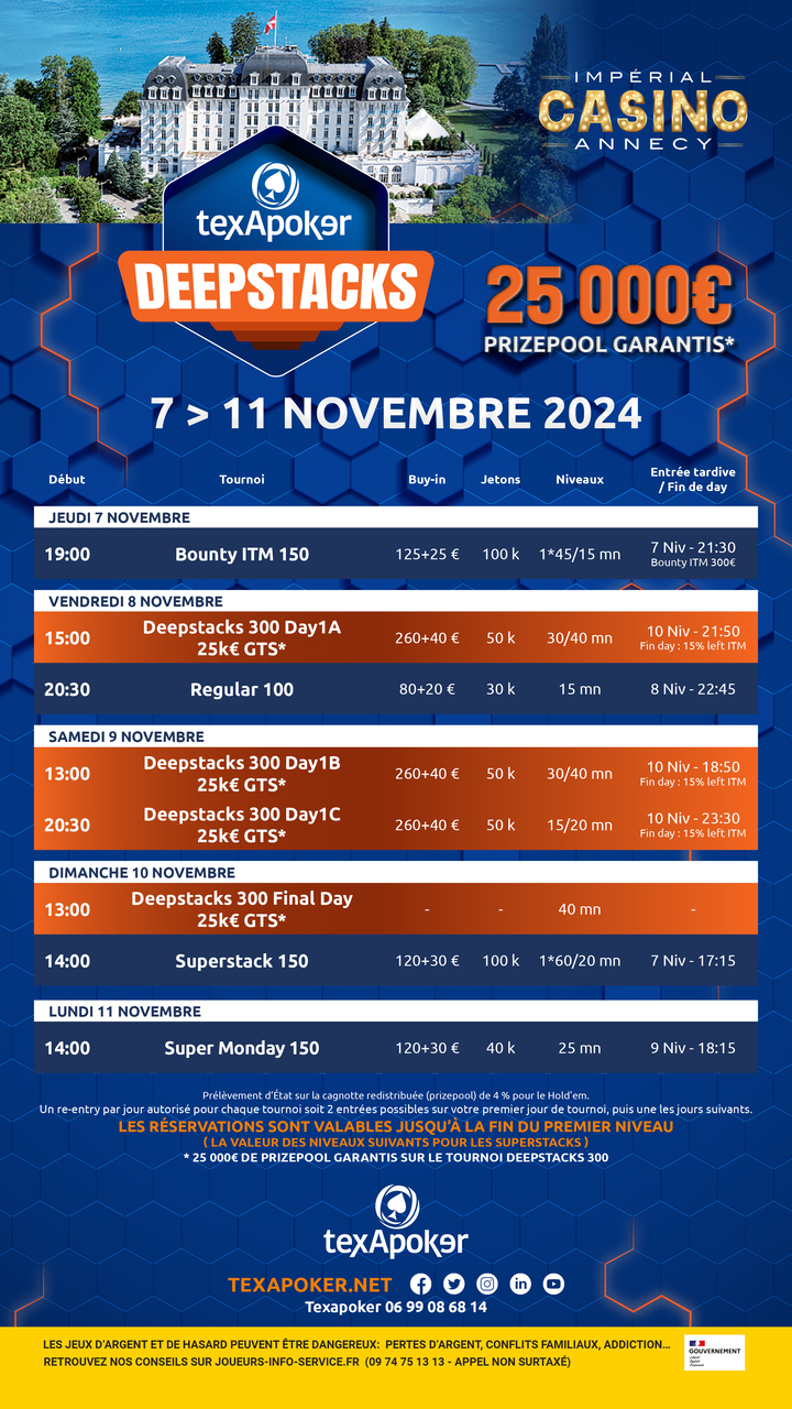 Texapoker est de retour à l'Impérial Casino d'Annecy , avec les Texapoker Deepstacks !