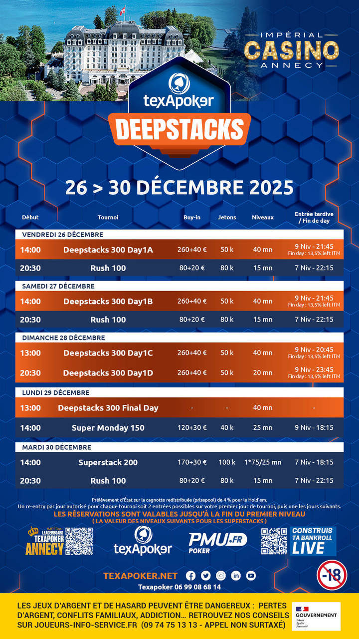 Texapoker est de retour à l'Impérial Casino d'Annecy , avec les Texapoker Deepstacks !
