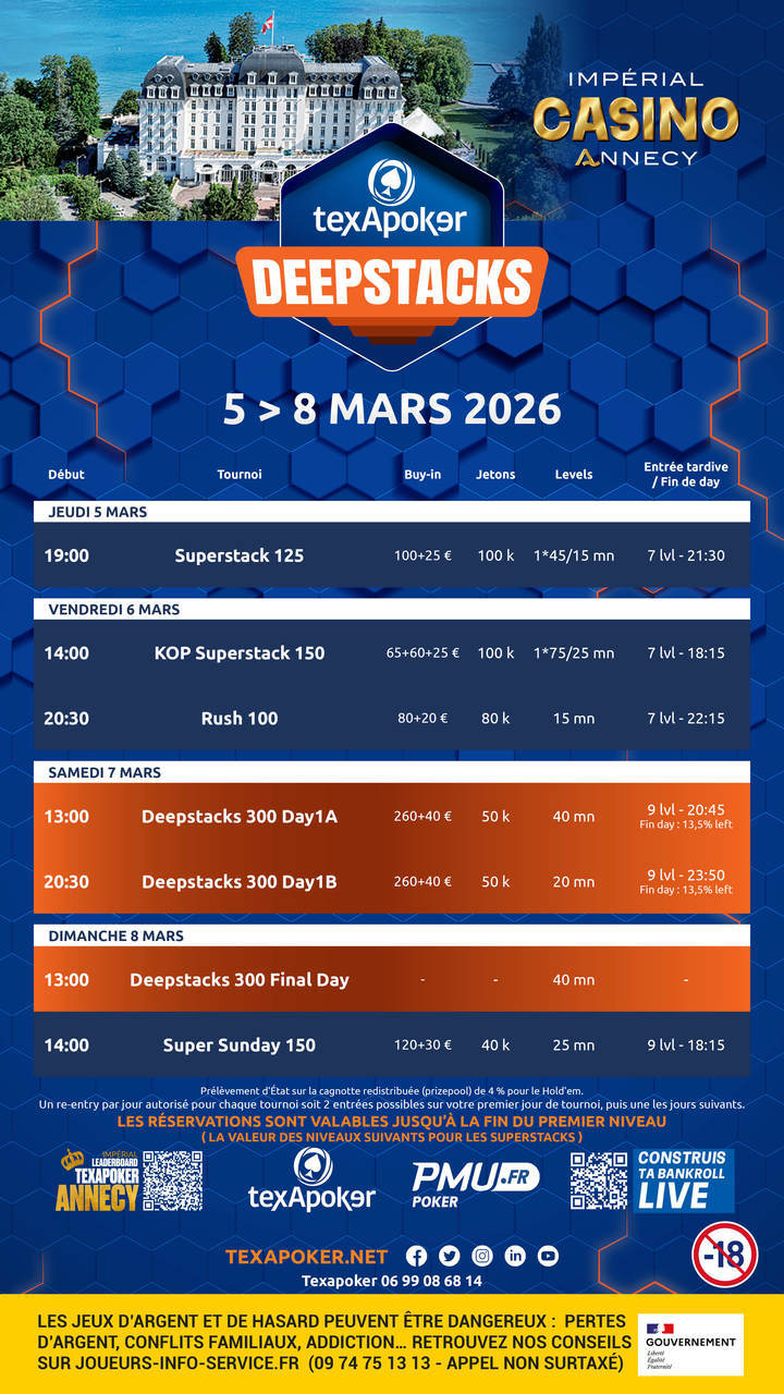 Texapoker est de retour à l'Impérial Casino d'Annecy , avec les Texapoker Deepstacks !
