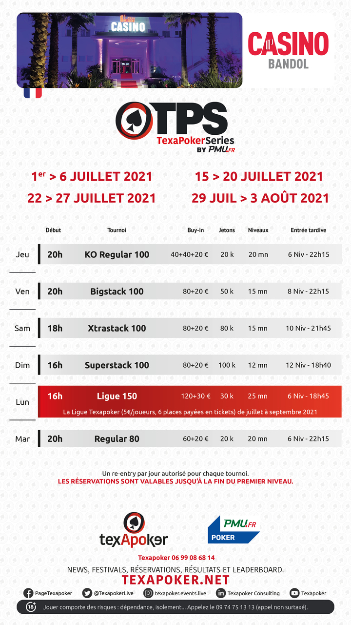 TexaPoker, PMU.fr et le Casino de Bandol vous présentent la Ligue TexaPoker, les tournois hebdomadaires à Bandol !