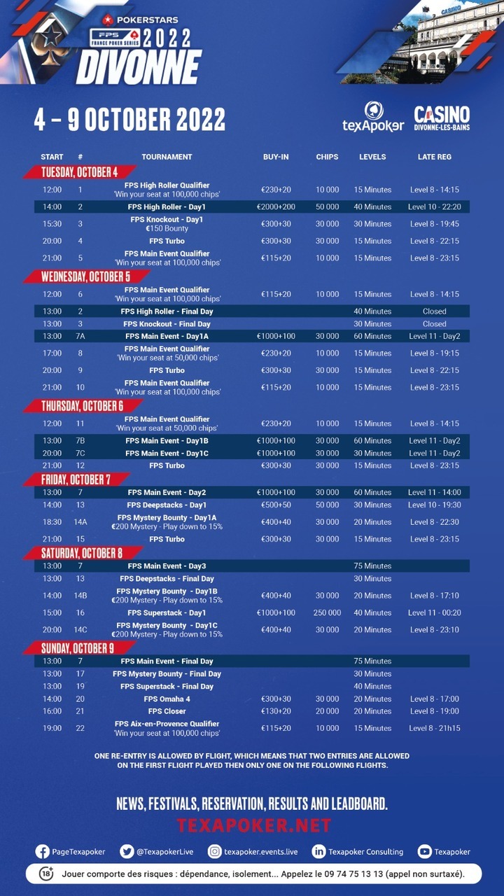 Pokerstars, Texapoker et le casino de Divonne vous présentent le retour des France Poker Series, qui auront lieu du 4 au 9 octobre !