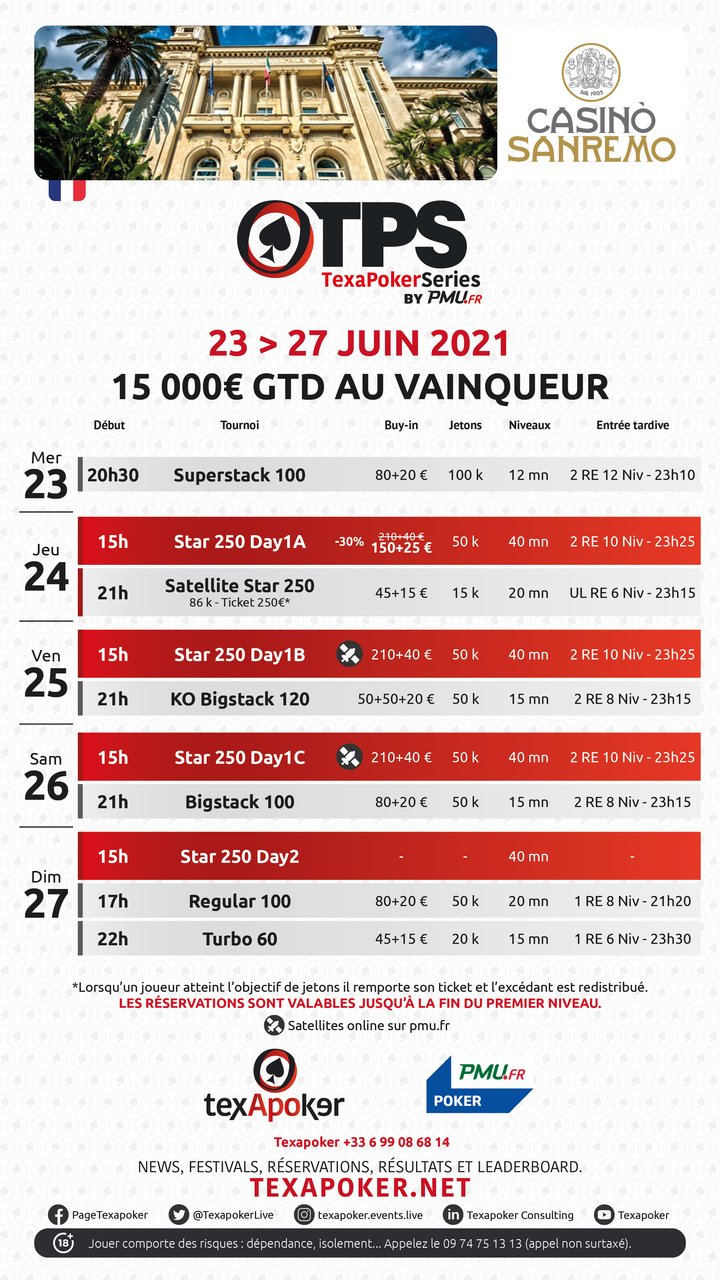 Le TPS est la marque de fabrique de Texapoker et il revient en Italie au casino de Sanremo !