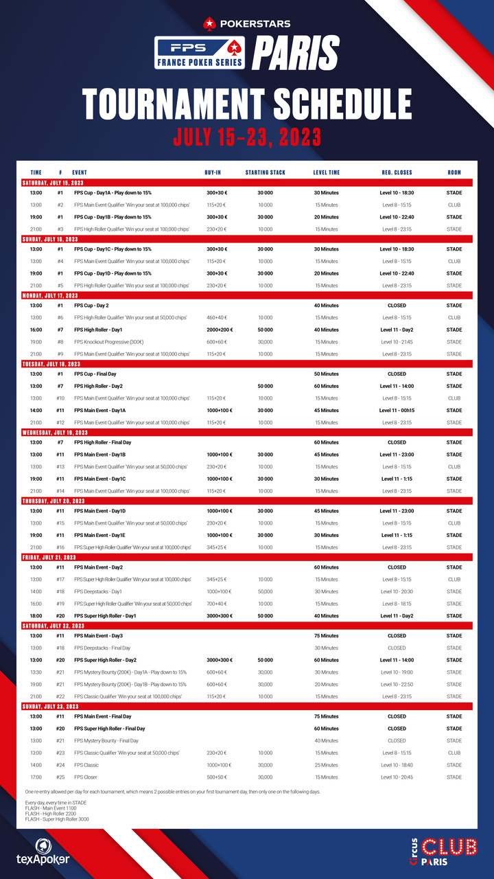 Le France Poker Series est de retour à Paris du 15 au 23 juillet, délocalisé au Stade Jean Bouin, en partenariat avec Texapoker et le Club Circus !