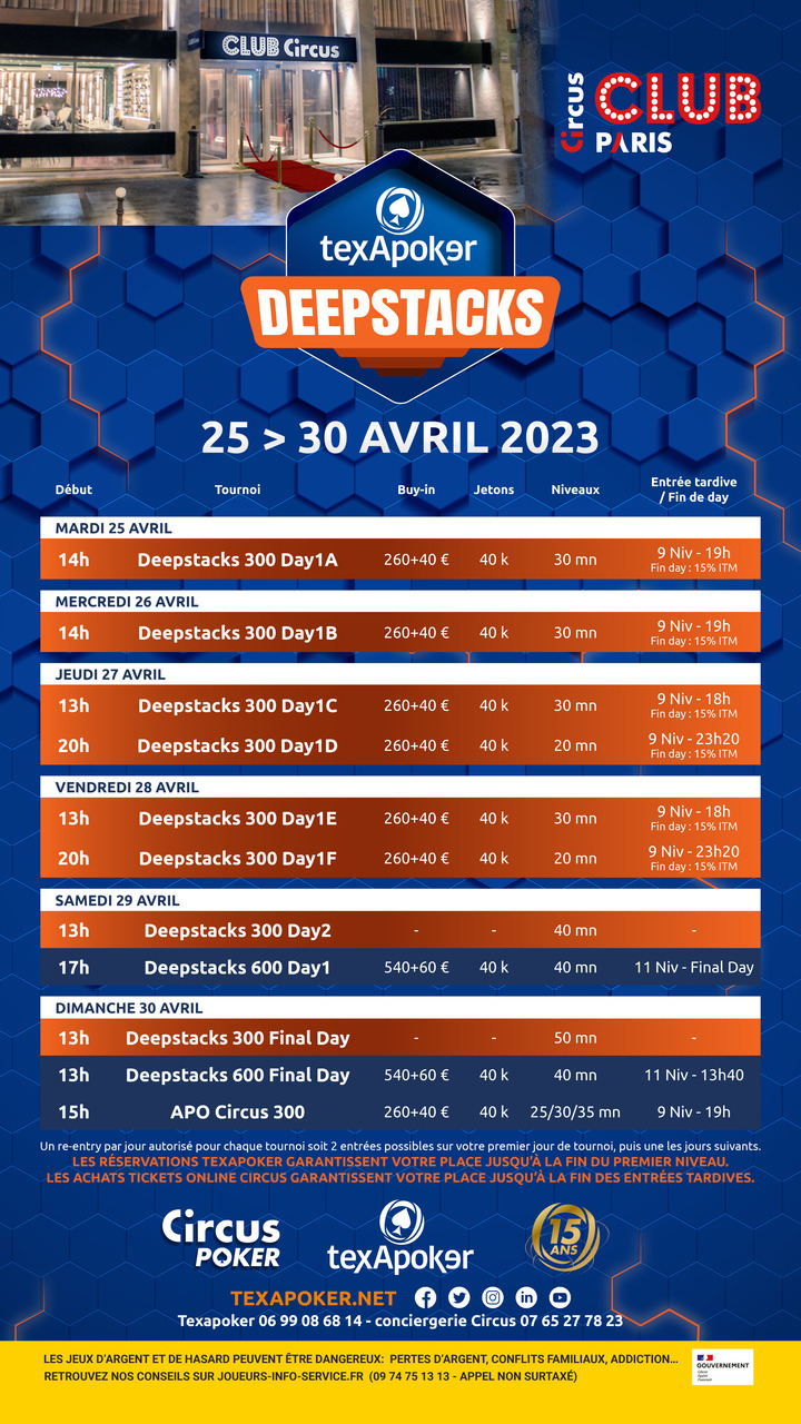 Texapoker est de retour au Club Circus Paris, avec les Texapoker Deepstacks !