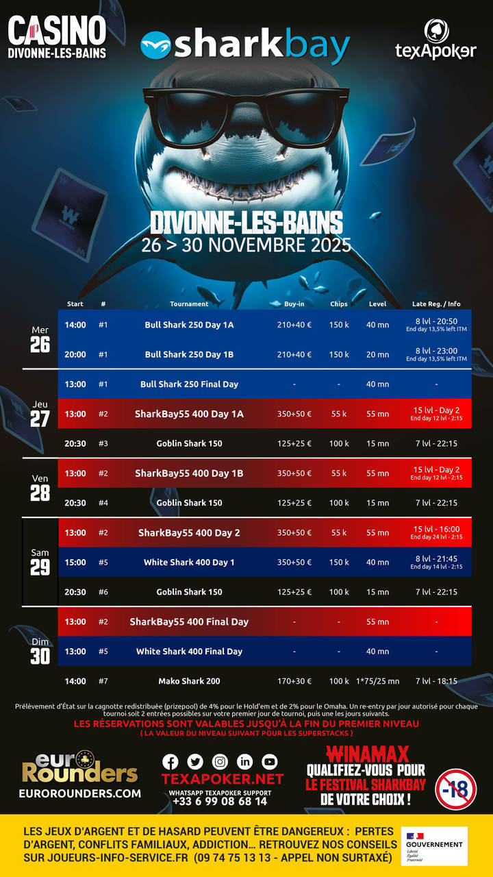 Texapoker et le festival SharkBay sont de retour au Casino de Divonnes-les-Bains, avec son partenariat  EuroRounders!