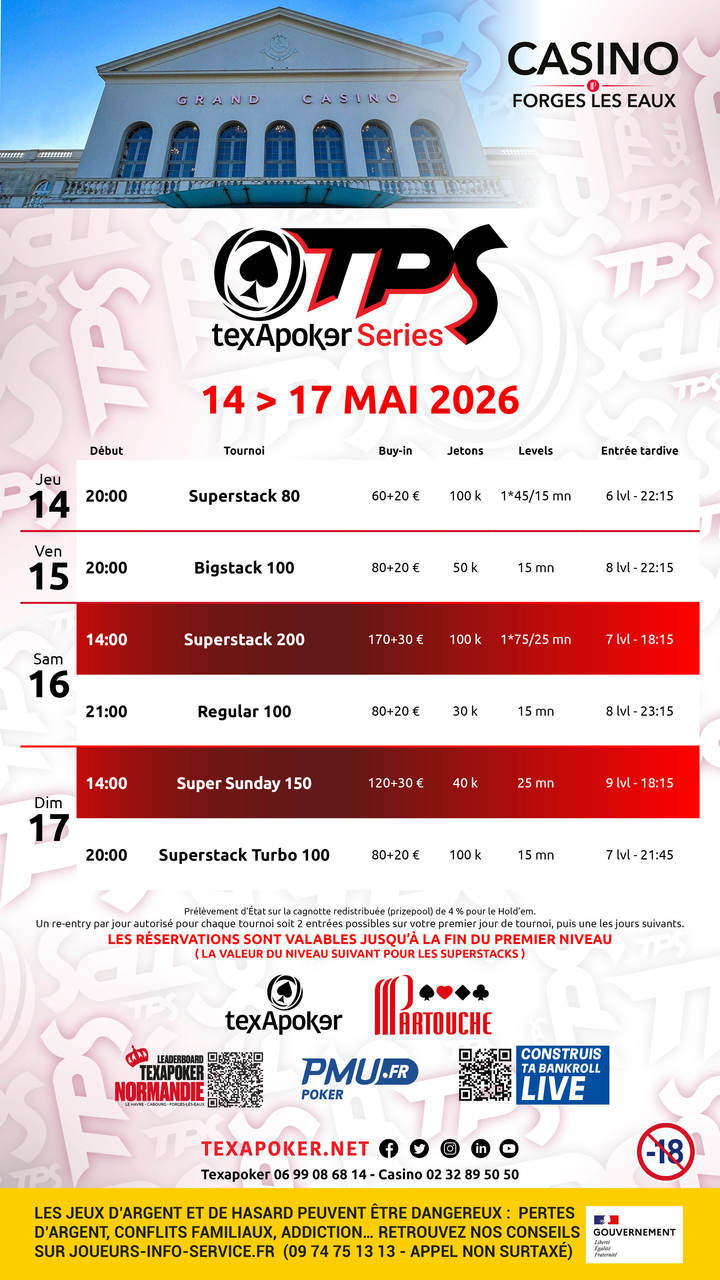 Le TPS est la marque de fabrique de Texapoker ! En partenariat avec PMU.fr, les tickets remportés sur PMU.fr sont utilisables sur l'ensemble des tournois.