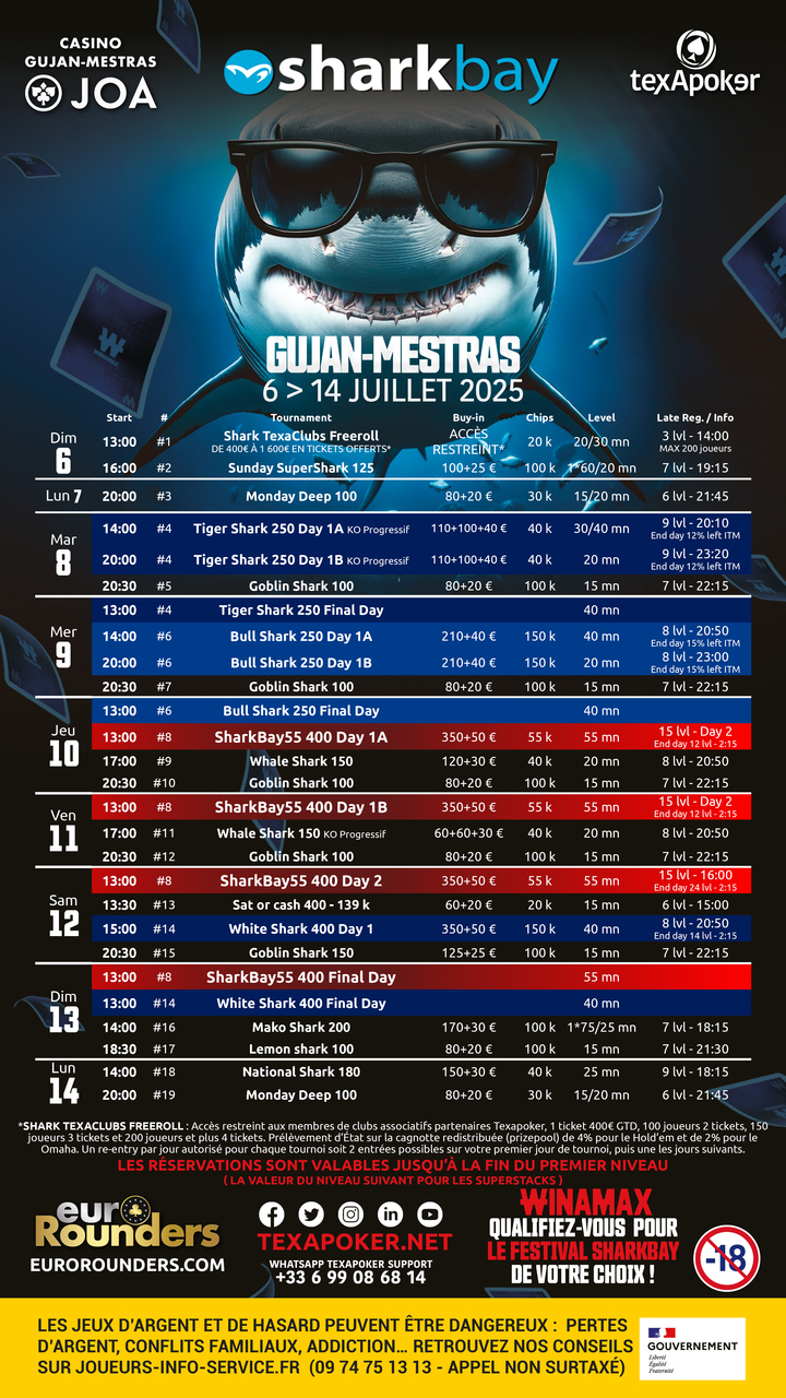 Texapoker et le festival SharkBay sont de retour au casino Joa Gujan-Mestras, avec son partenariat EuroRounders!