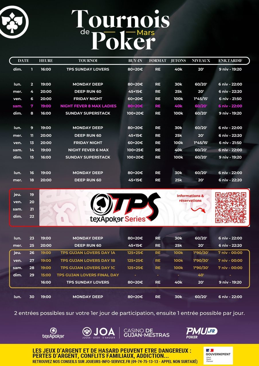 Retrouvez toutes les informations concernant vos tournois hebdomadaires au Casino JOA de Gujan-Mestras !