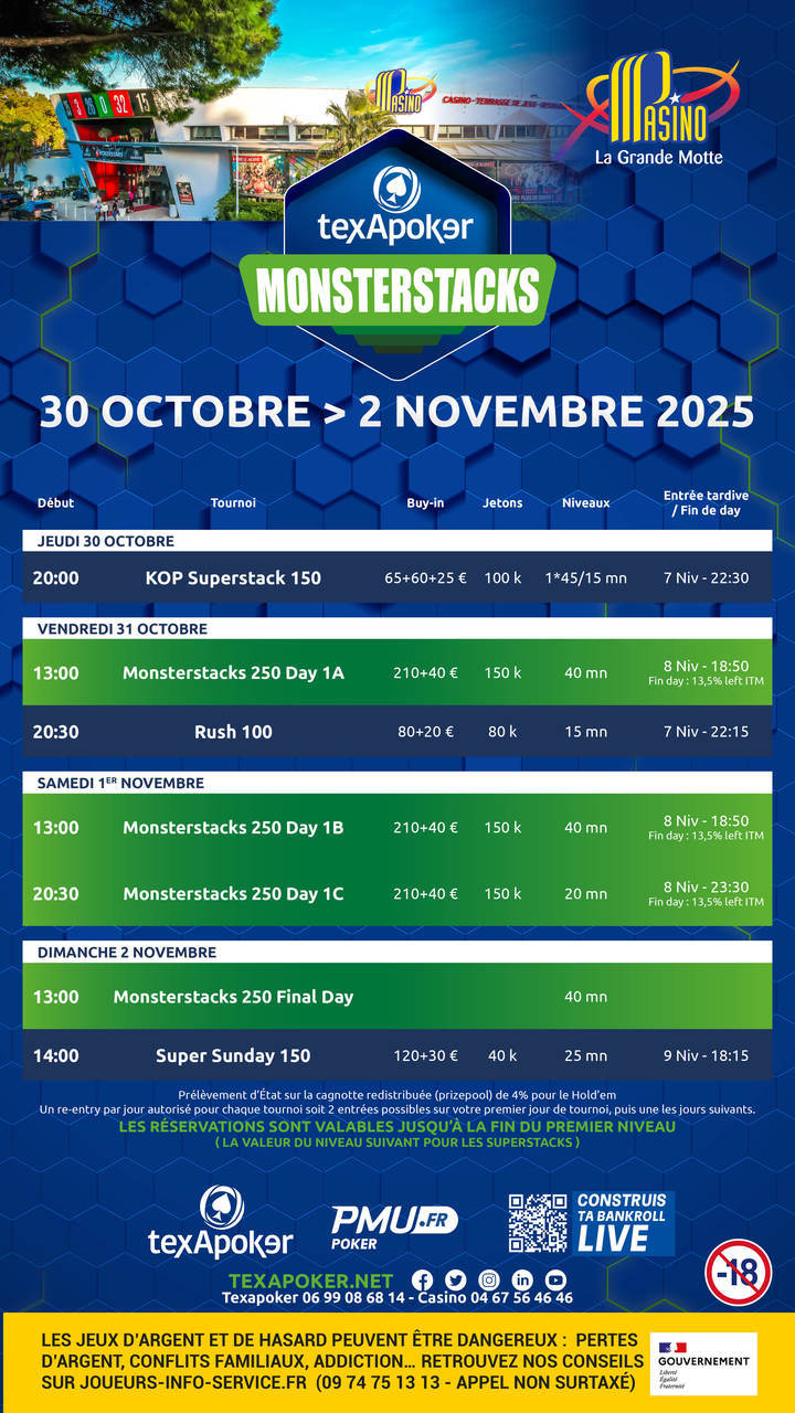 Cette semaine, vous pourrez retrouver en Main Event un Monsterstacks 250€, avec 3 jours de départ :