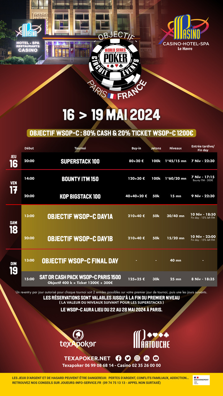 Le WSOP-C Paris arrive à grand pas, et le Pasino du Havre et Texapoker vous proposent un festival afin de vous qualifier pour cet événement !