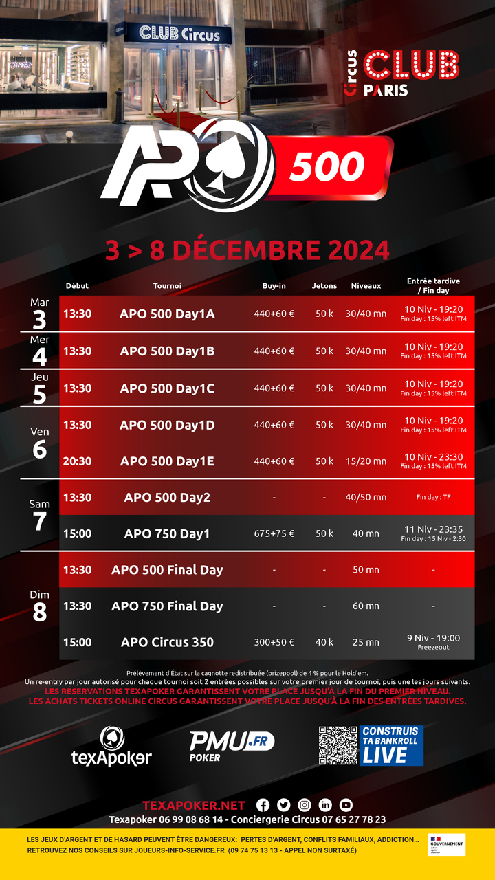 Découvrez ainsi en Main Event un APO 500, tournoi phare de Texapoker