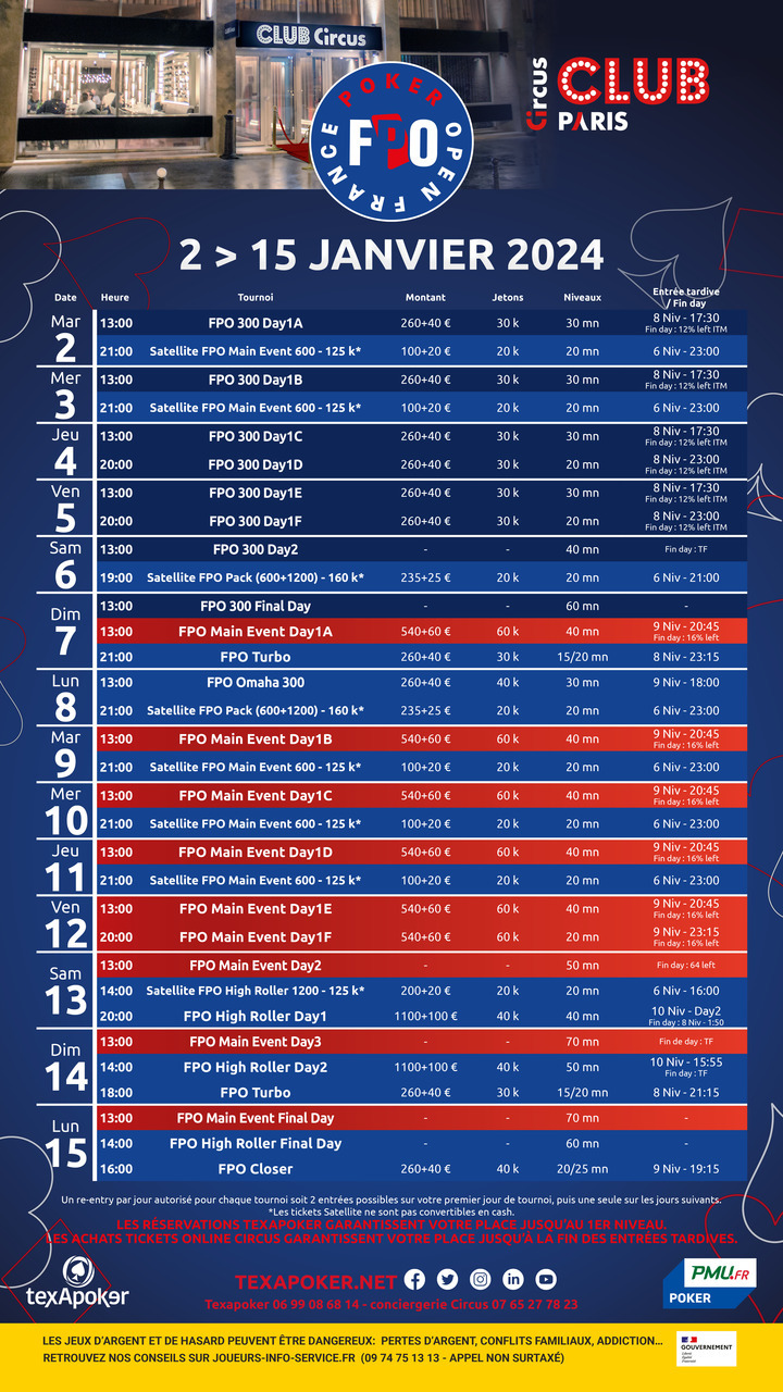 Le France Poker Open par PMU.fr et Texapoker est de retour en 2024 et la première étape aura lieu au Club Circus à Paris !