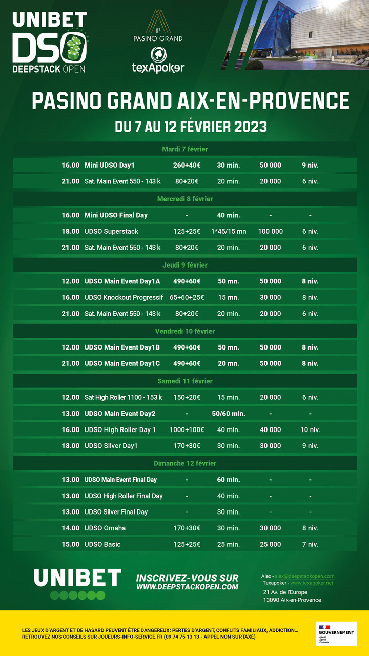 Les Unibet DeepStack Open sont de retour pour 2023, et toujours en partenariat avec Texapoker ! La première étape de ce circuit se déroulera au Pasino Grand d'Aix en Provence !