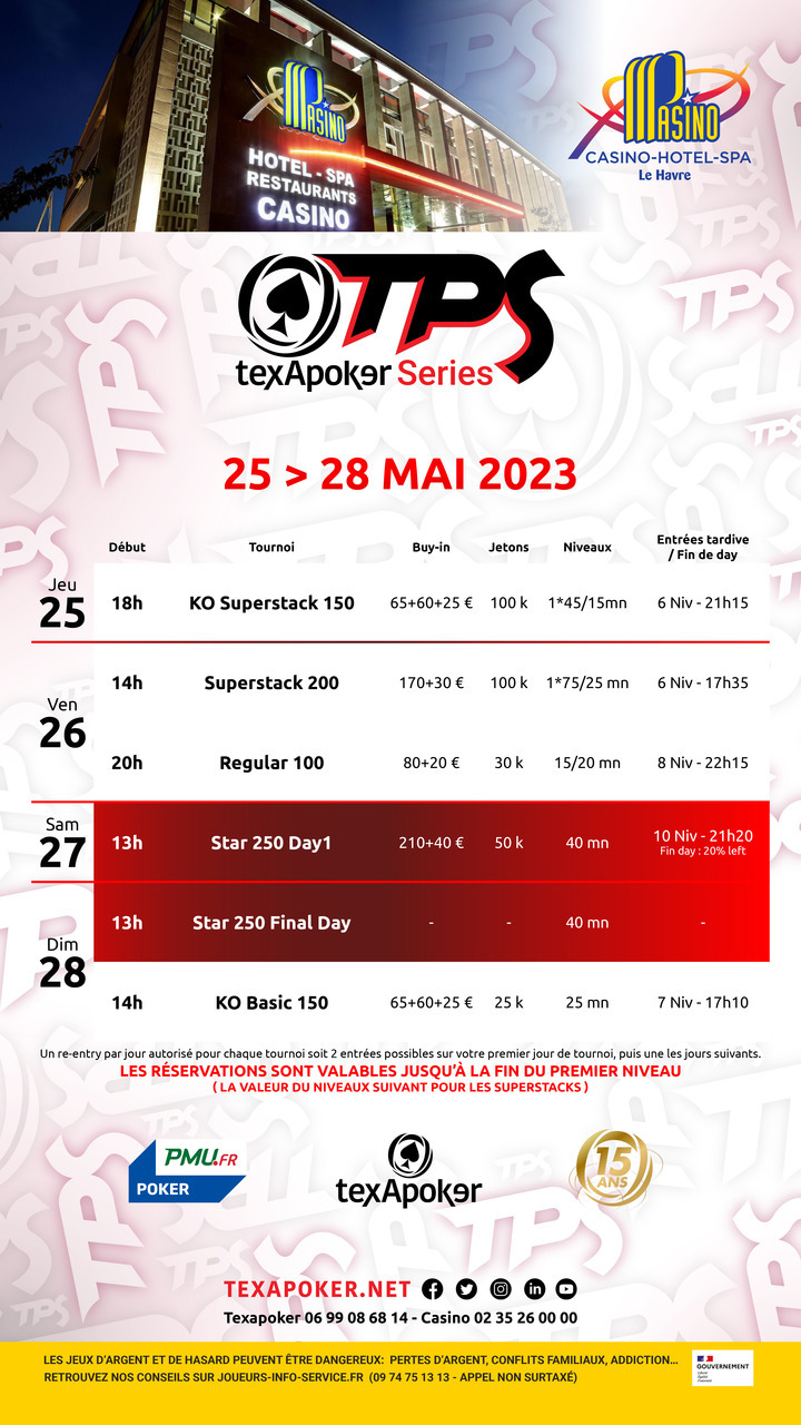 Le TPS est la marque de fabrique de Texapoker ! En partenariat avec PMU.fr, vous pouvez tenter de gagner votre place aux tournois live Texapoker sur l'un de leurs satellites online.