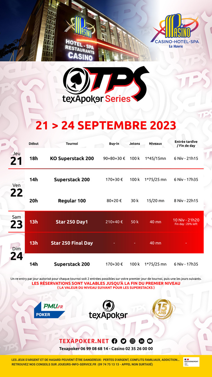 Le TPS est la marque de fabrique de Texapoker ! En partenariat avec PMU.fr, vous pouvez tenter de gagner votre place aux tournois live Texapoker sur l'un de leurs satellites online.