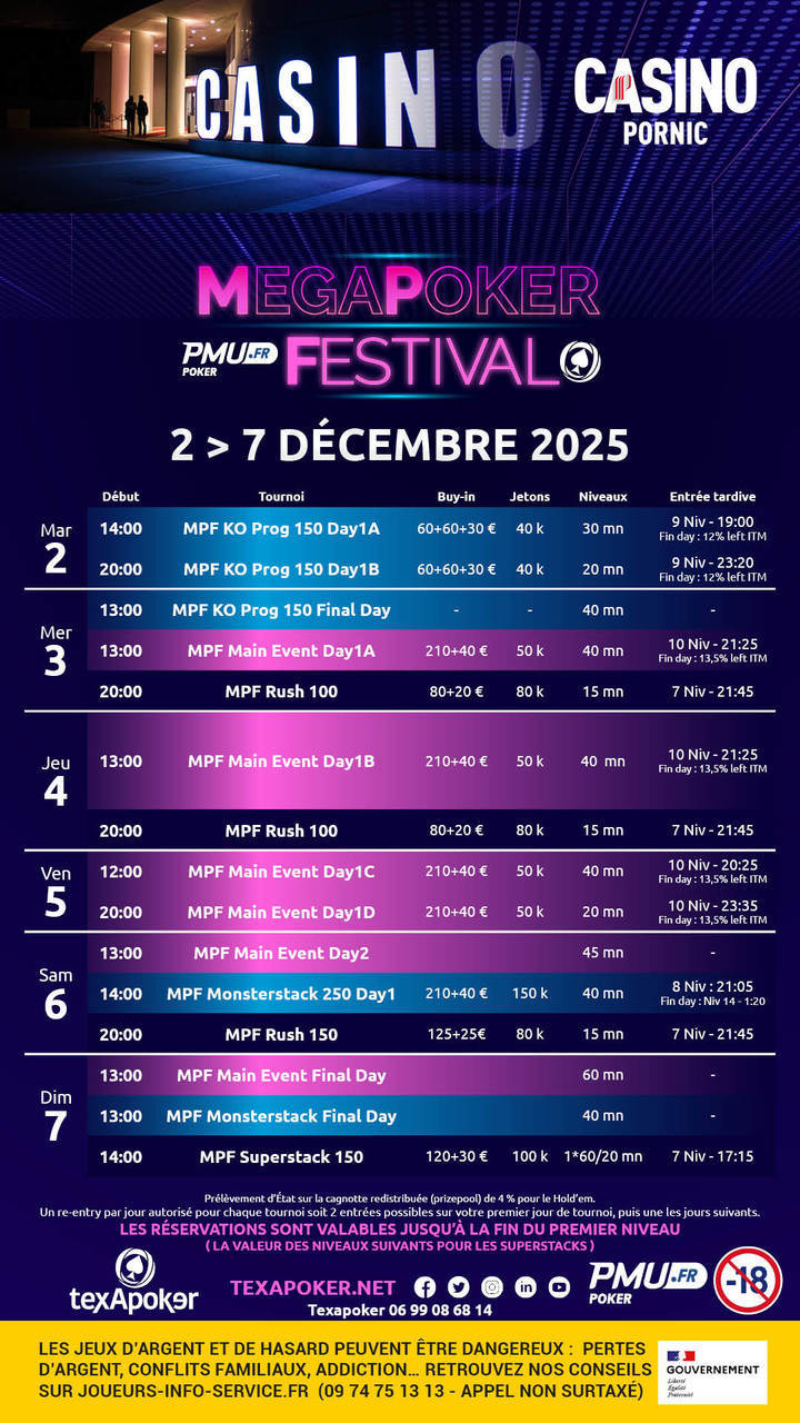 Texapoker, PMU.fr et le Casino de Pornic sont fiers de vous annoncer le retour du MegaPoker Festival !