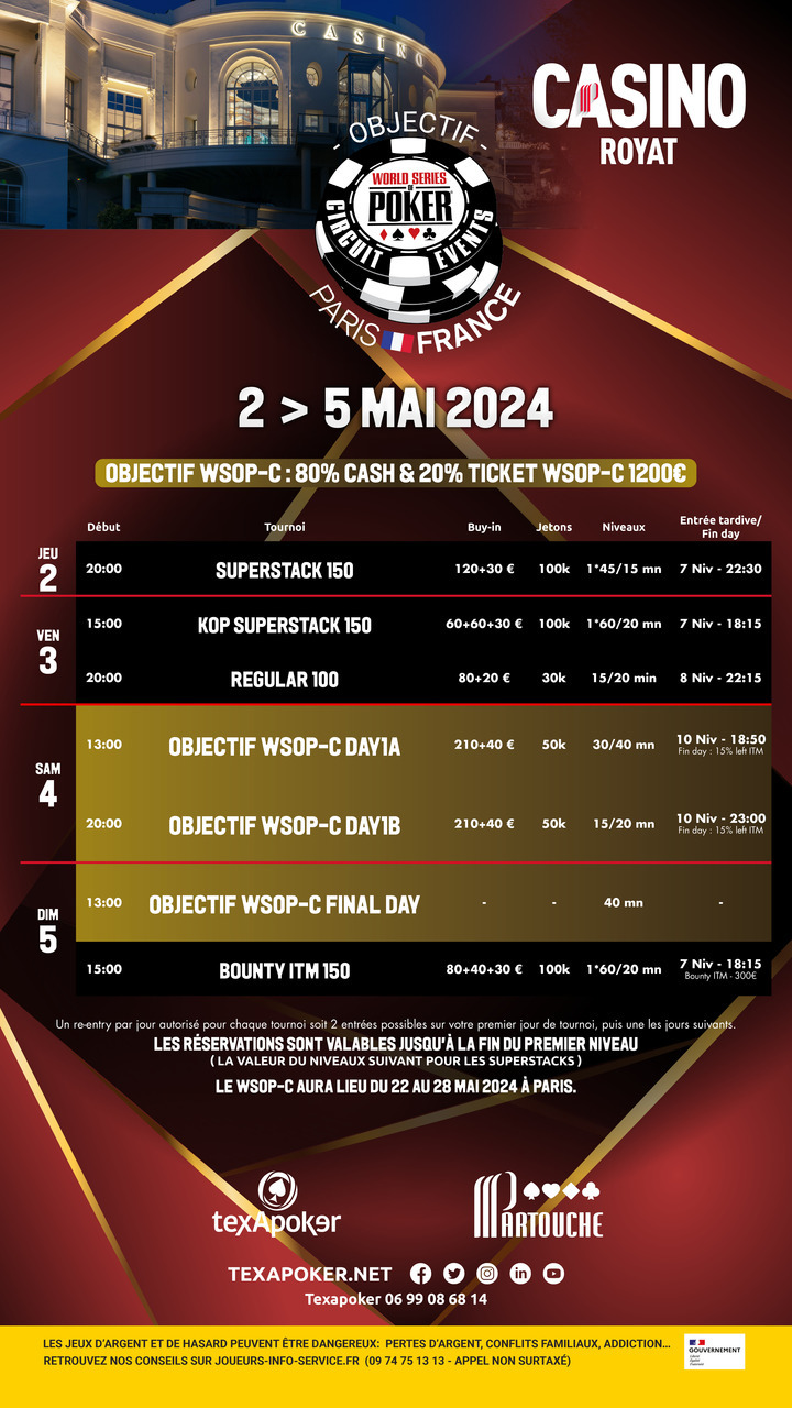 Le WSOP-C Paris arrive à grand pas, et le casino de Royat et Texapoker vous proposent un festival afin de vous qualifier pour cet événement !