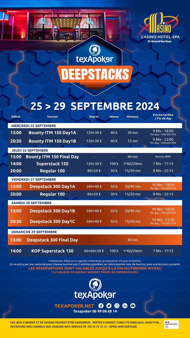 Texapoker est de retour au Pasino de Saint-Amand-les-Eaux avec les Texapoker Deepstacks !
