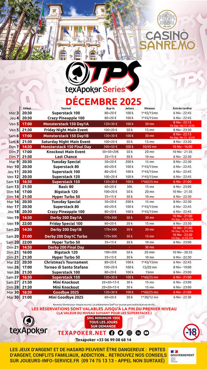 Le TPS est la marque de fabrique de Texapoker et il revient en Italie au casino de Sanremo !