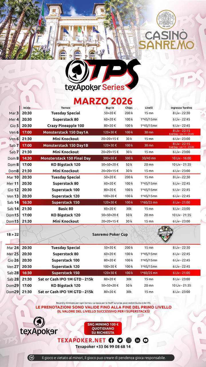 Le TPS est la marque de fabrique de Texapoker et il revient en Italie au casino de Sanremo !