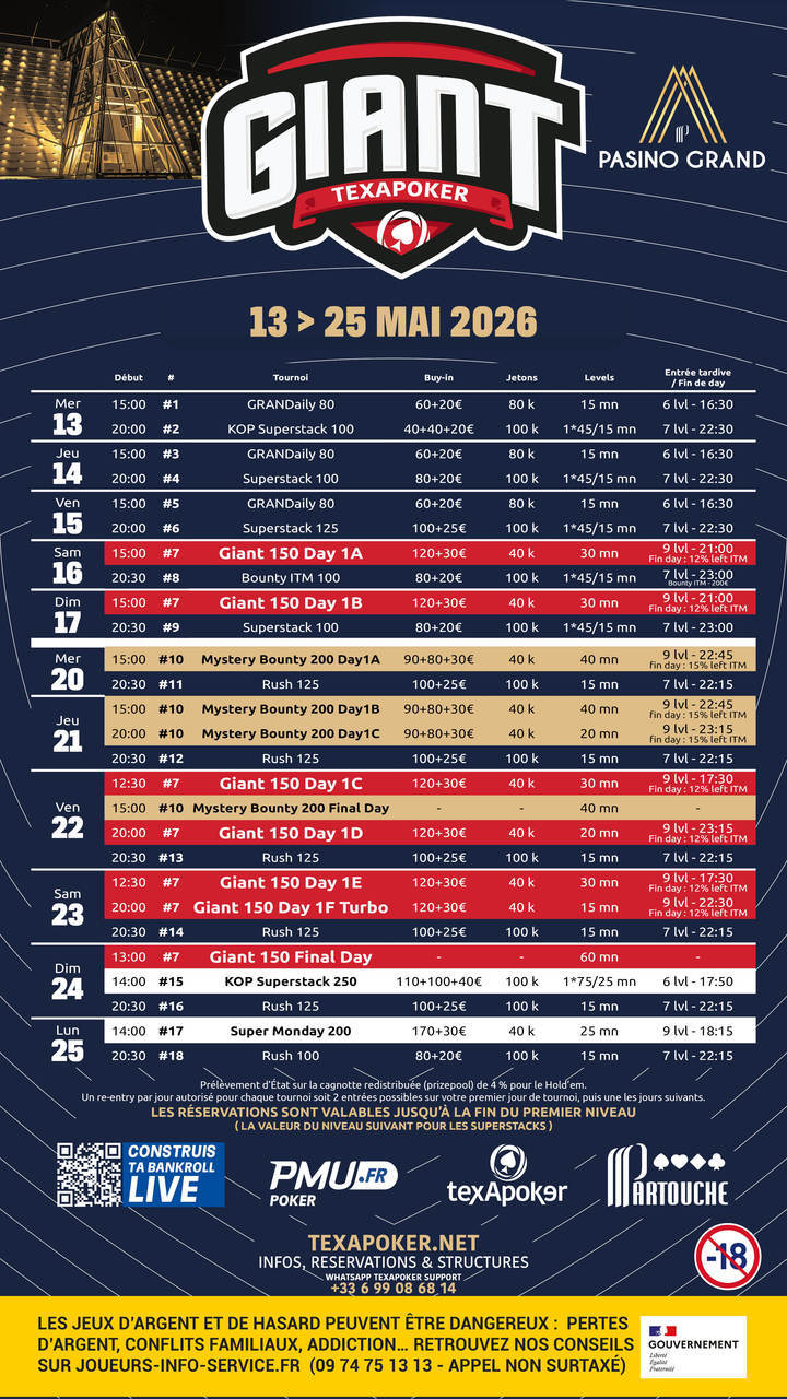 Texapoker torna al Pasino Grand di Aix-en-Provence con un grande festival, il Texapoker Giant!