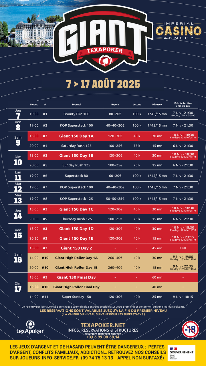 Texapoker torna al Casinò Imperial di Annecy con un grande festival, il Texapoker Giant!