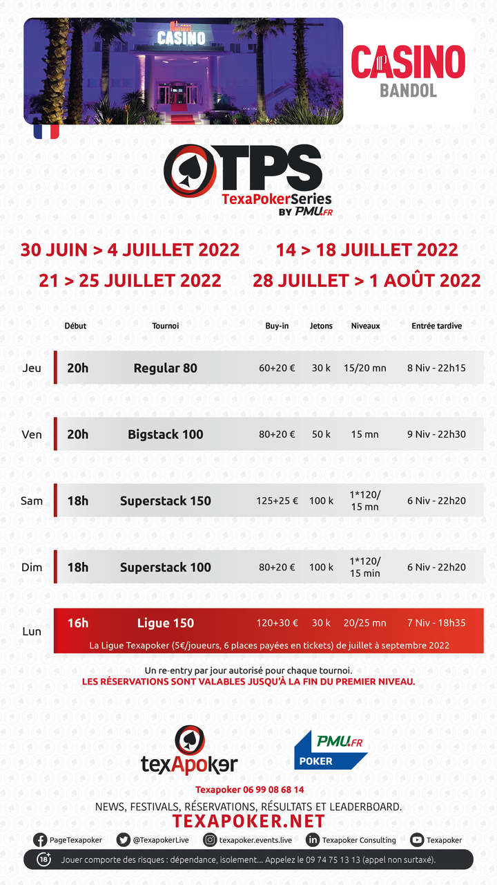 TexaPoker, PMU.fr e il Casinò di Bandol vi presentano la TexaPoker League, i tornei settimanali a Bandol!