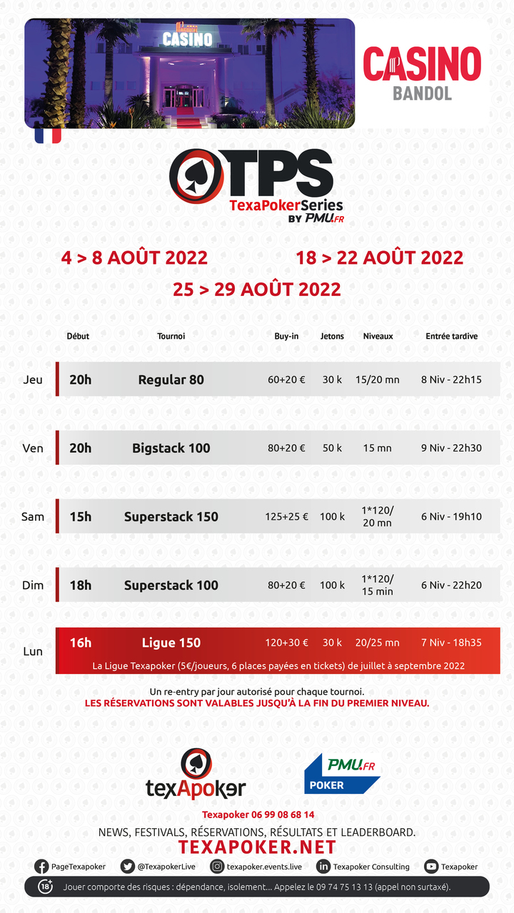 TexaPoker, PMU.fr e il Casinò di Bandol vi presentano la TexaPoker League, i tornei settimanali a Bandol!