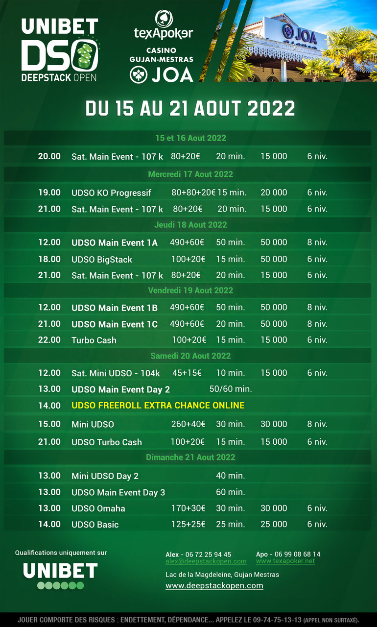 L'Unibet DeepStack Open continua, e ancora in collaborazione con Texapoker! La nuova tappa di questo circuito si svolgerà a Gujan-Mestras!