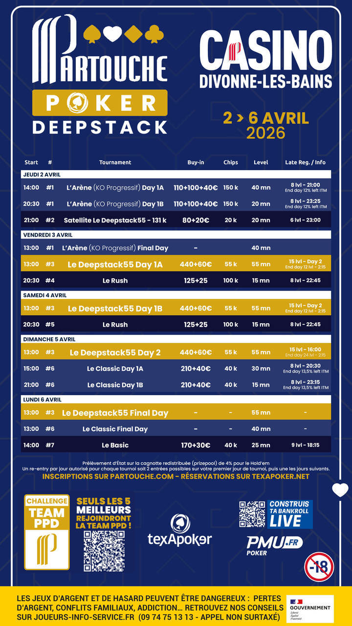 Il gruppo Partouche e Texapoker presentano il loro nuovo circuito, il Partouche Poker Deepstack! E la prima tappa si terrà al Casino Divonne!